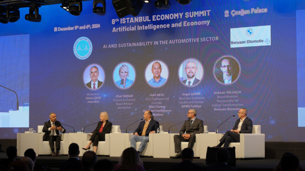 Moderatörlüğünü usta gazeteci Hakan Çelik’in gerçekleştirdiği panelde Borusan Otomotiv Dijital Dönüşümden Sorumlu İcra Kurulu Üyesi Gökhan Yoluaçık, Fütürist- Ekonomist – YK Danışmanı ve Yazar Ufuk Tarhan, Digitopia CEO’su ve Türkiye Yapay Zeka İnisiyatifi (TRAI) Kurucusu Halil Aksu ve KPMG Türkiye Yeni Nesil Teknoloji Çözümleri Lideri ve Şirket Ortağı Engin Şayan otomotiv sektöründe yapay zeka alanındaki yenilikler ve sürdürülebilirlik çalışmalarına dair bilgi verdi.