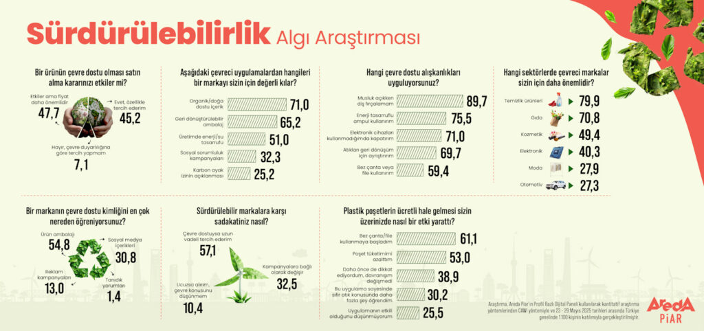 Areda Piar Araştırma Şirketi tarafından gerçekleştirilen “Sürdürülebilirlik Algı Araştırması”, Türkiye genelinde çevreye duyarlılık konusunda dikkat çeken sonuçlar ortaya koydu.