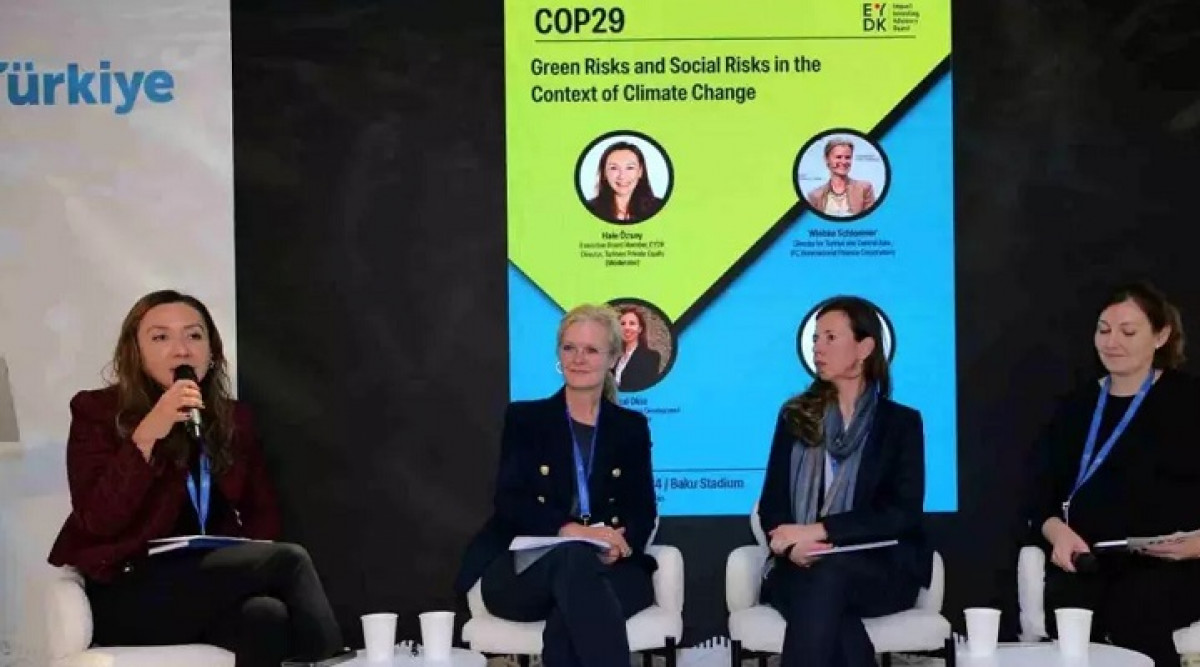 Birleşmiş Milletler (BM) İklim Değişikliği Çerçeve Sözleşmesi 29. Taraflar Konferansı (COP29), Azerbaycan’ın başkenti Bakü’de “Yeşil Bir Dünya İçin Dayanışma İçinde” temasıyla ve üst düzey katılımla gerçekleşti. Yıldız Holding Strateji, İş Geliştirme ve M&A Başkanı Fezal Okur Eskil, Etki Yatırımı Danışma Kurulu’nun (EYDK) düzenlediği “İklim Değişikliği Bağlamında Yeşil Riskler ve Sosyal Riskler” panelinde Yıldız Holding’in “Bu Dünya Bizim” yaklaşımı ve “İsrafsız Şirket” iş modeliyle yürüttüğü sürdürülebilirlik çalışmalarını katılımcılarla paylaştı.