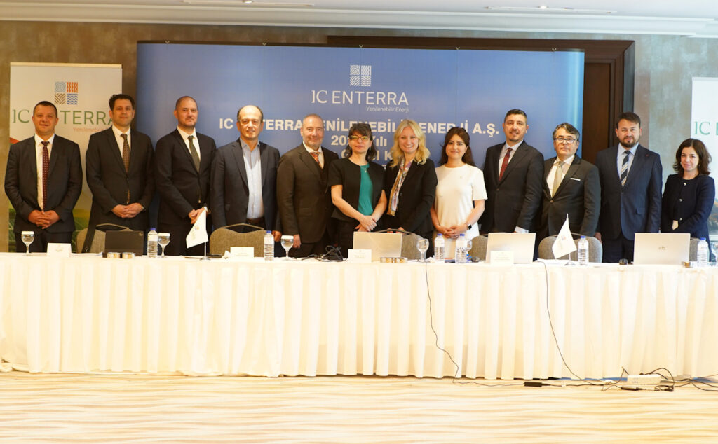 Enerji sektöründe sürdürülebilir bir geleceğe katkı sağlayan yatırımları ile önce çıkan IC Enterra Yenilenebilir Enerji A.Ş.’nin, Olağan Genel Kurul Toplantısı, 28 Mayıs Çarşamba günü Ankara’da gerçekleştirildi. Şirketin faaliyet raporu, finansal tabloları ve yatırım planlarının paylaşıldığı Genel Kurul’a IC Enterra Yenilenebilir Enerji Yönetim Kurulu Başkanı Alp Keler, şirket CEO’su Cem Aşık ve diğer şirket yöneticileri ile hissedarlar katıldı.