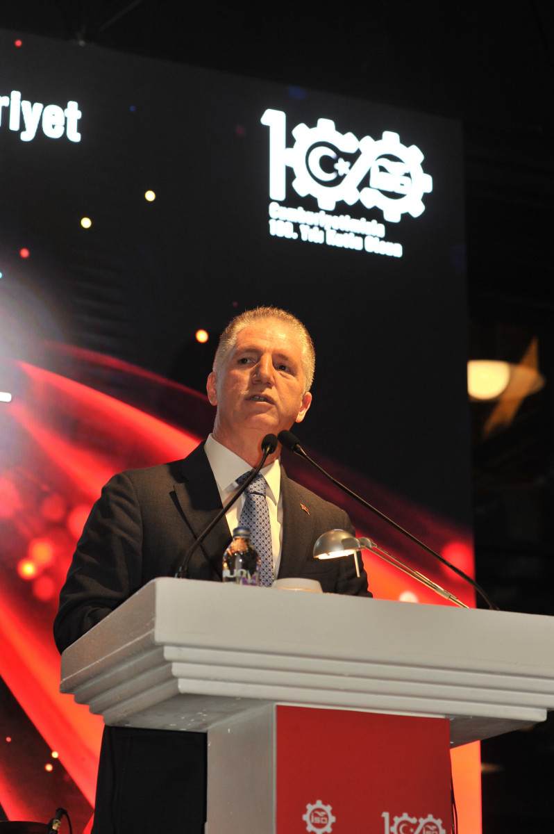 Cumhuriyet’in 100 yıllık sanayileşme serüveninin meşakkatlerle dolu olduğuna vurgu yapan Erdal Bahçıvan, sözlerini şöyle sürdürdü: “Fakat bu 100 yıllık hikâyenin bugününde dünyanın en gelişmiş 20 ekonomisi arasında gösteriliyorsak, bunda sanayimizin verdiği mücadele hiç küçümsenemez. Derler ki: Umudunu kaybeden insan için yarın yoktur. Cumhuriyeti kuran kadro umutsuz değildi. Doğan her güne umutla bakan, ‘yarın güzel şeyler olacak’ diyen bir kadroydu. Cumhuriyetimiz’in daha ilk yıllarında, İzmir İktisat Kongresi ile ilk tohumları atılan ve her 10 yıllık dilimlere baktığımızda ivmelenerek devam eden sanayileşme sürecimiz; Cumhuriyetimiz’in İkinci Yüzyılına Gayri Safi Yurtiçi Hasıla’ya yüzde 25 civarında bir katkı ve değer üreterek girmektedir. Kuşkusuz bu katkı yeni yüzyılımızda çok daha yüksek düzeylere çıkacaktır. Çünkü biliyoruz ki sanayiden güçlü bir katkı alamayan ülkeler, ne yazık ki refah toplumu olma yolunda çok gerilere düşmektedirler. Bugün sanayinin gerçek anlamda gelecek ufuklarını oluşturacağımız bir dönemdeyiz. Artık yüksek teknoloji, dijitalleşme, sürdürülebilirlik ve Türk sanayisinin katma değerden ve yüksek teknolojiden pay alarak kendini gelecek rekabete hazırlanması olarak adlandırdığımız bir döneme doğru yolculuk yapıyoruz.”