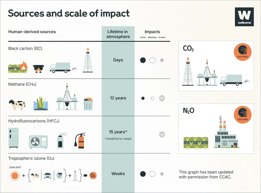 Karbondioksit (CO2), iklim değişikliğiyle mücadelede en çok gündeme gelen gaz olsa da, “süper kirleticiler” olarak adlandırılan diğer sera gazları ve aerosoller de büyük bir tehdit oluşturuyor. Metan, hidroflorokarbonlar ve siyah karbon gibi kirleticiler, küresel ısınmanın %45’inden sorumlu tutuluyor. Bu gazlar aynı zamanda her yıl milyonlarca erken ölümün de nedeni olarak gösteriliyor.
