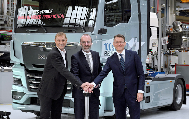 MAN Truck & Bus, Münih’teki fabrikasında elektrikli kamyonlarının seri üretimine başladı. MAN CEO’su Alexander Vlaskamp ve MAN’ın Üretim ve Lojistikten Sorumlu Yönetim Kurulu Üyesi Michael Kobriger’in katılımıyla hayata geçirilen yeni üretim modeli, hem elektrikli hem de dizel kamyonların tek bir entegre üretim hattında karma şekilde üretilmesine imkan veriyor.
