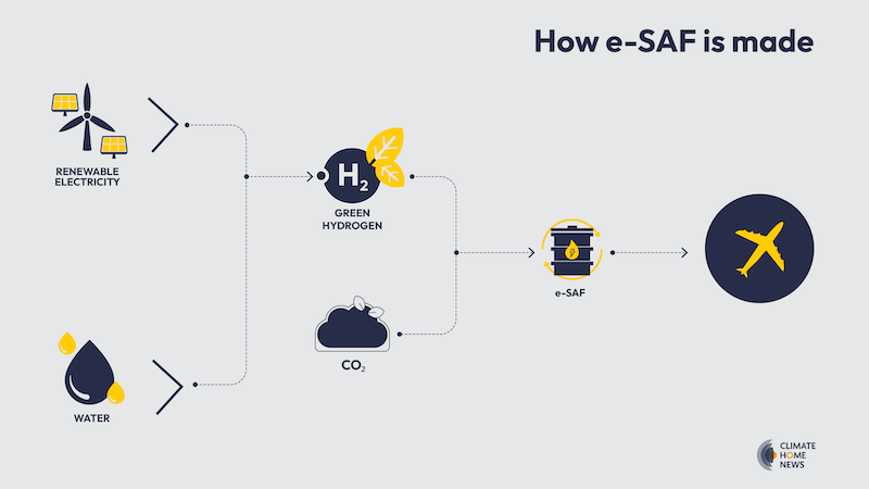 Bir diğer gelişen alternatif ise e-SAF ya da power-to-liquid SAF: yenilenebilir kaynaklardan elde edilen yeşil hidrojen ile atmosferden veya sanayi tesislerinden yakalanan karbondioksitin birleşimiyle sentezleniyor. E-SAF, emisyonları %90’a kadar azaltabiliyor ancak üretimi halen çok pahalı.