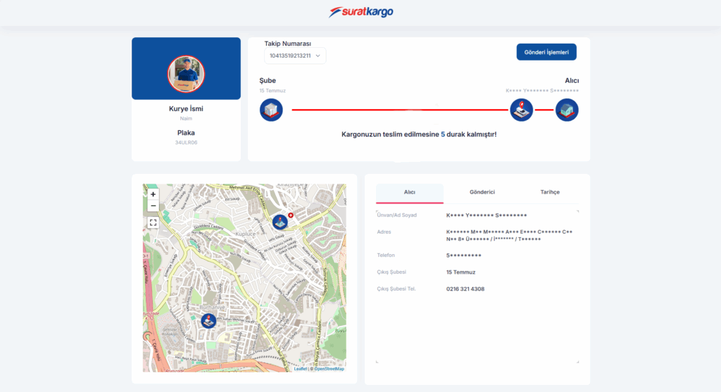 SSP, sadece bir teslimat uygulaması değil; saha operasyonlarını uçtan uca yöneten bütünsel bir platform. Alıcıların kendi gönderileri üzerinde aktif yönetim olanaklarına sahip olmasını sağlayan bu platform, ‘Adresimdeyim, komşuma bırak, başka gün getir, SEN noktasına yönlendir’ gibi talepleri gerçek zamanlı olarak Sürat Kargo’ya iletebiliyor. Böylece yeniden teslimat sürecine gerek kalmadan, anlık olarak takip ve yönlendirme yapılabiliyor. Teslimat öncesinde alıcılara, kurye bilgileri ve tahmini varış süresini görmelerini sağlayacak sayfaya bağlantıyı içeren bir SMS gönderiliyor. Burada adreslerine kaç durak kaldığı bilgisini de paylaşarak müşterilerin kendi planlamalarını yapabilmelerini ve gerekirse dinamik yönlendirme seçeneklerinden biri ile gönderilerinin yolculuğunu değiştirebilmeleri sağlanıyor.