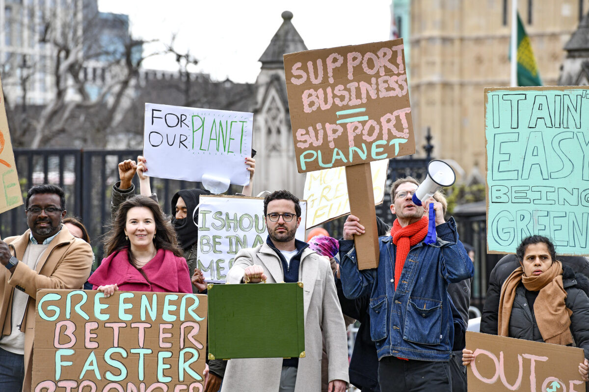 İklim kampanyacıları bu hafta parlamento önünde kırmızı bir bütçe kutusu çantası dağıtarak hükümeti işletmeleri sürdürülebilirlik çabalarında desteklemeye çağırdı.